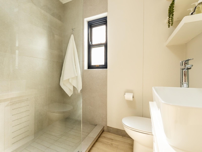 The open plan living area has comfortable seating and a smart TV with satellite channels and Netflix. There is a fibre connection and air conditioning throughout.