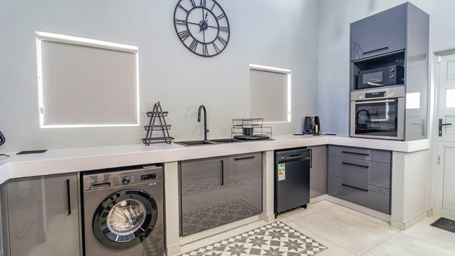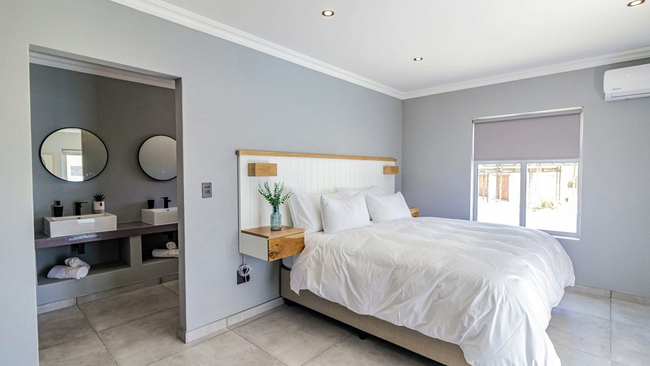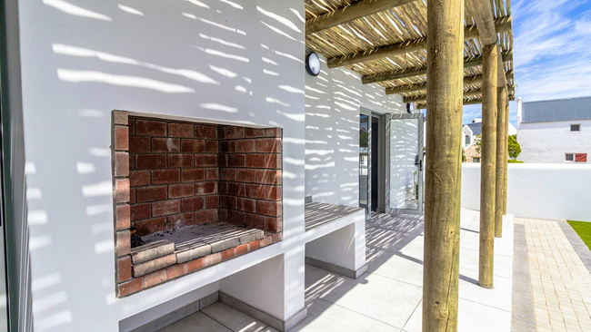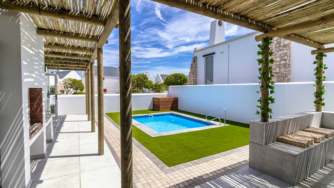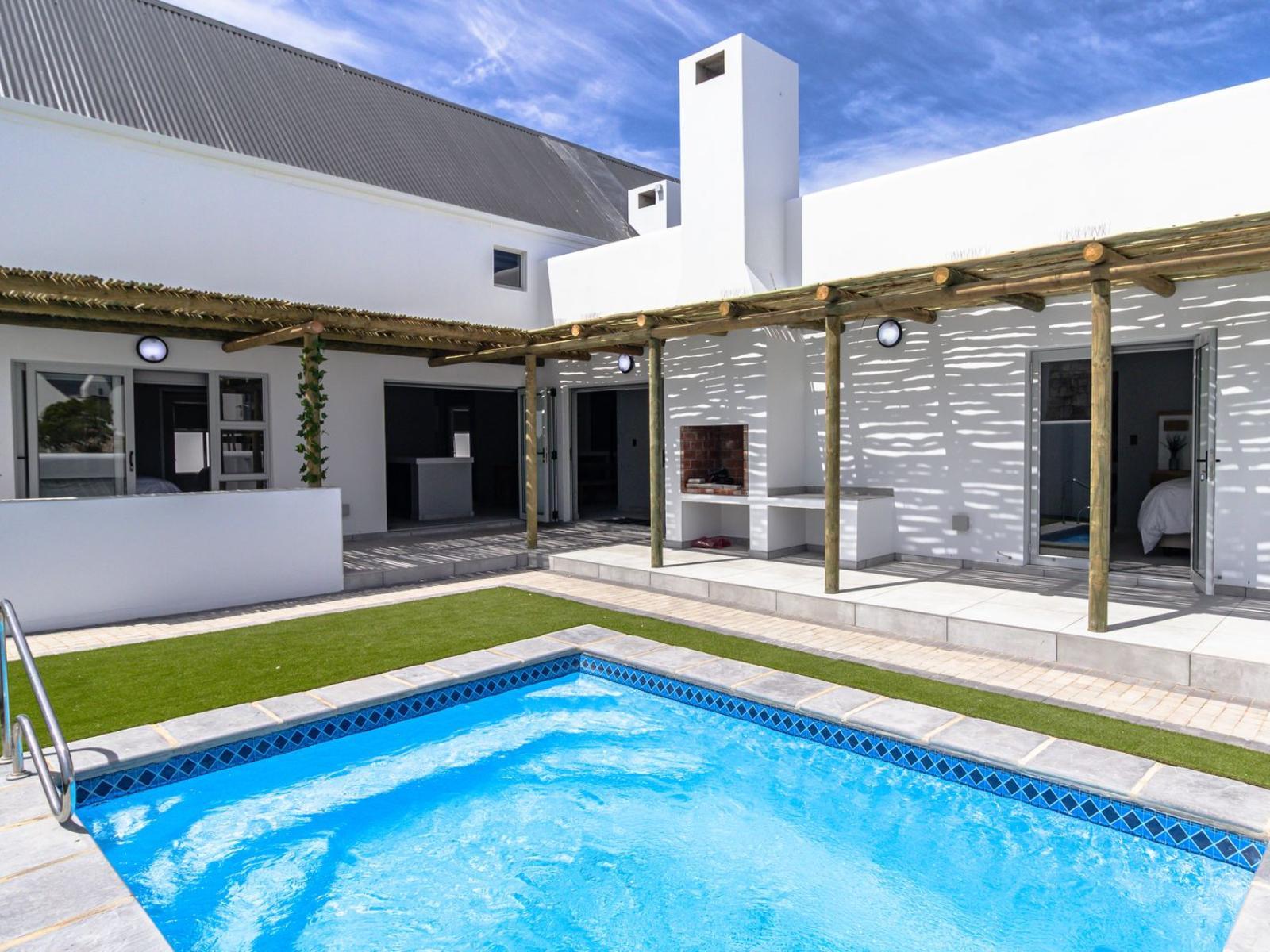 Skobbejak is a well appointed and welcoming holiday home situated in Bekbay, Paternoster, and is ideal for families or groups seeking comfort and proximity to the sea. The house comfortably accommodates up to eight guests and features four tastefully furnished bedrooms with five bathrooms. Two of the bedrooms are fitted with king size beds, while the remaining two offer queen size beds. Each bathroom is fitted with either a bath or a shower, and quality linen and towels are supplied for guest convenience. The open plan kitchen is thoughtfully equipped with a fridge freezer, gas hob, oven, air fryer, microwave, cutlery, crockery, and tea and coffee making facilities. A dishwasher and washing machine are included to ensure a relaxed self catering stay. The kitchen flows seamlessly into the dining area, which features an indoor braai and television, creating an inviting space for shared meals and entertaining. The lounge offers comfortable seating for relaxation, while additional amenities include air conditioning in selected rooms and complimentary Wi-Fi throughout the home. Several rooms, as well as the kitchen area, open onto a patio with outdoor seating, braai facilities, and a sparkling swimming pool, providing excellent indoor and outdoor living. Secure on site parking is available for guests.