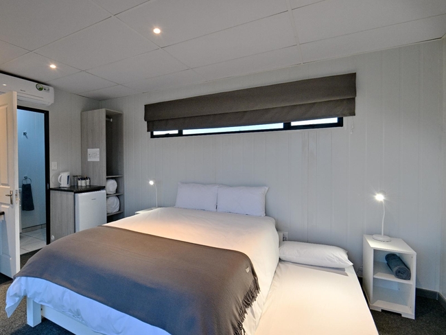 Double Rooms are furnished with a Queen-size bed. The en-suite bathroom is fitted with a shower, toilet and basin. The rooms are air-conditioned and offer tea / coffee making facilities, a bar fridge, desk, bathroom amenities and a patio with outdoor furniture. Rooms are serviced daily.