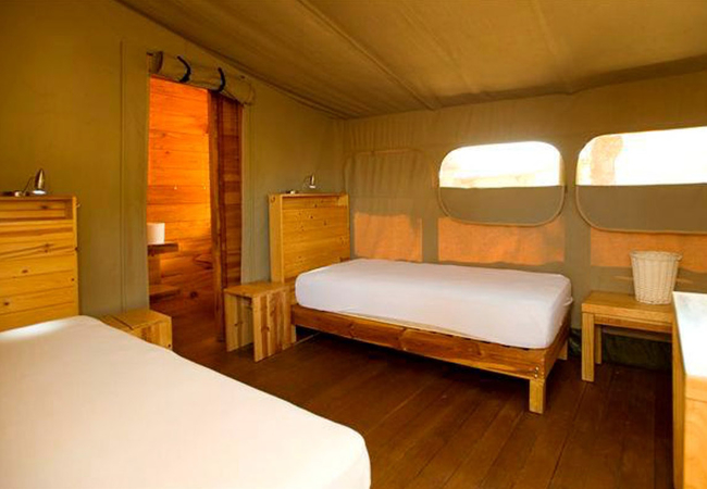 Boardwalks join the tents. Bedding and towels are included. You might however like to bring your own blankets with you in winter.