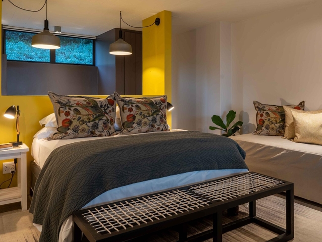 Room One is a spacious, sunlit retreat featuring a generous balcony, an extra-length king-size bed, and a comfortable daybed. The room includes walk-in cupboards and a large bathroom with a free-standing bath and a double shower. Conveniently located near the 25-metre natural swimming pool, it offers a blend of comfort and easy access to relaxing outdoor amenities.
