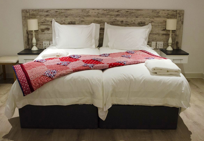 This room features twin beds and an en-suite bathroom with a walk-in shower, toilet and a basin. The room contains an honesty bar fridge, a Smart TV (with DStv and Netflix), laptop safe and tea / coffee making facilities.