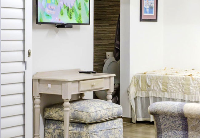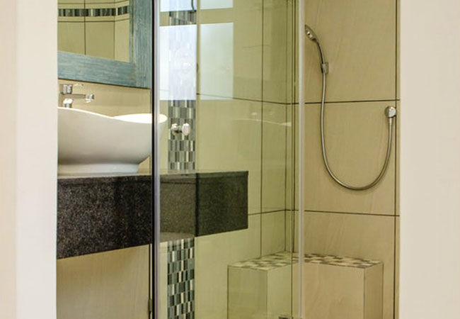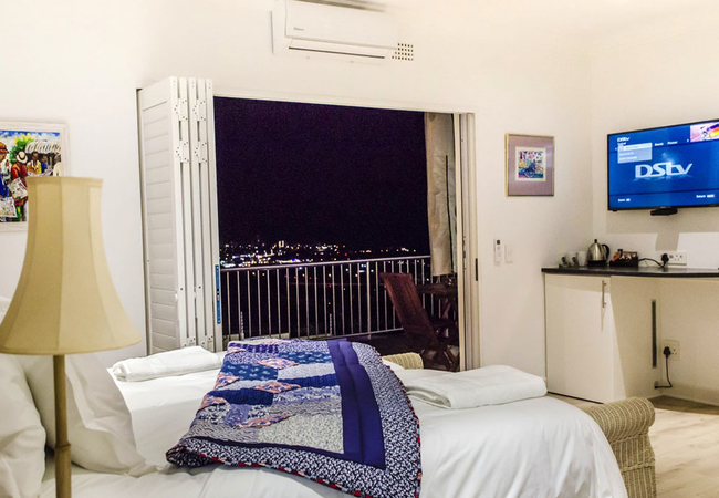 A View 2 Sea comprises two single beds and an en-suite bathroom with a shower, toilet and a basin. The room includes an honesty bar fridge, laptop safe, a Smart TV (with DStv and Netflix) and tea / coffee making facilities.