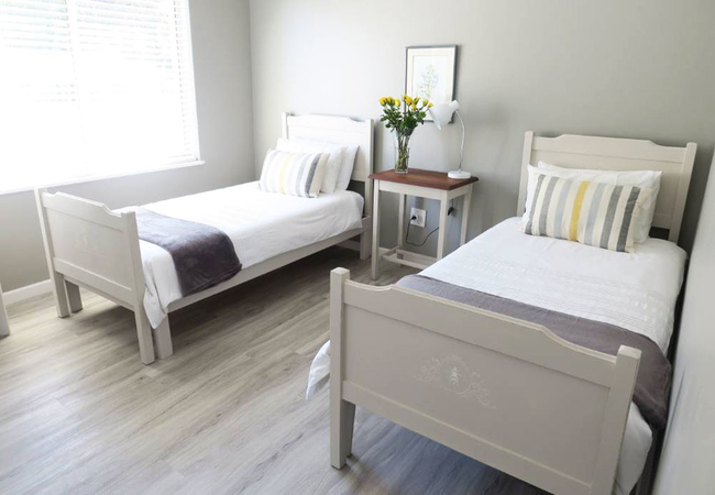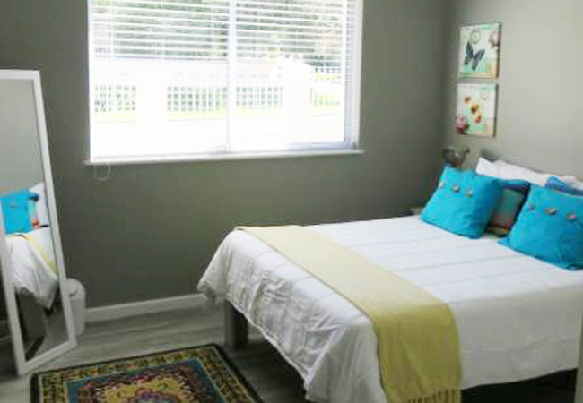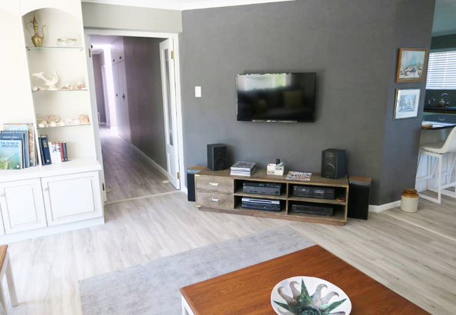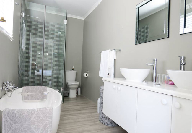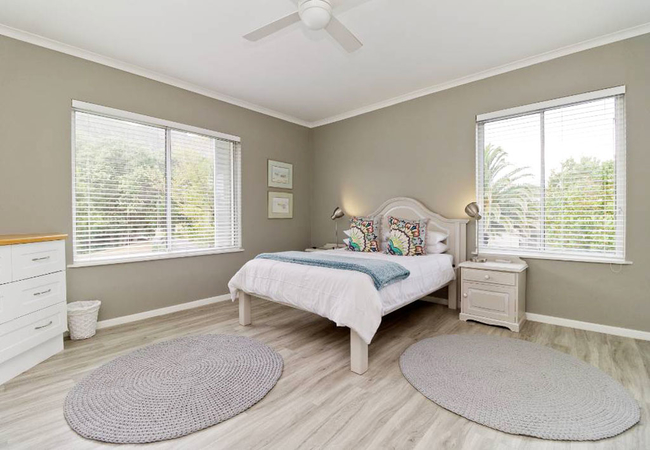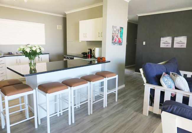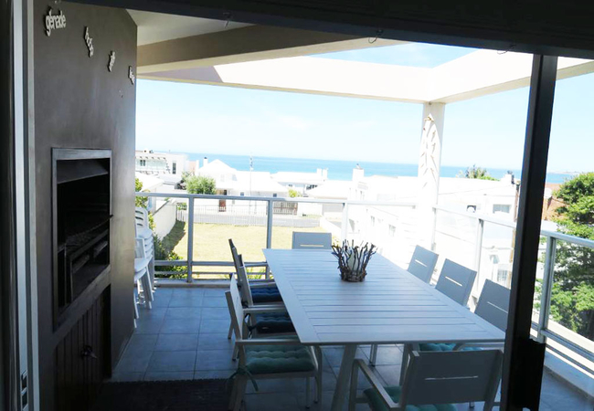 Son and Saffier is a double storey home with five bedrooms and four bathrooms. The first floor has two bedrooms; the Main bedroom is furnished with a Queen-size bed and has an en-suite bathroom fitted with a bath, toilet and basin. The second bedroom on this floor is furnished with a double bed and it makes use of a separate bathroom fitted with a bath, shower, toilet and basin. The bottom floor has three bedrooms and two bathrooms. The first bedroom is furnished with a double bed, the second bedroom is furnished with two single beds and a bunk bed and the third bedroom is furnished with two single beds. These three bedrooms make use of two separate bathrooms, one fitted with a shower, toilet and basin and the other fitted with a bath, toilet and basin. Both the first and bottom floors have their own fully equipped kitchens and lounge areas. The kitchens have a fridge, stove and oven, kettle, toaster and microwave. There are seating spaces to enjoy meals at and the lounges are equipped with a fireplace for chilly winter evenings. In addition to that there are laundry facilities on the bottom floor and a spacious, furnished balcony with braai facilities. The house boasts beautiful mountain and sea views as well as a large garden for children to run around in.