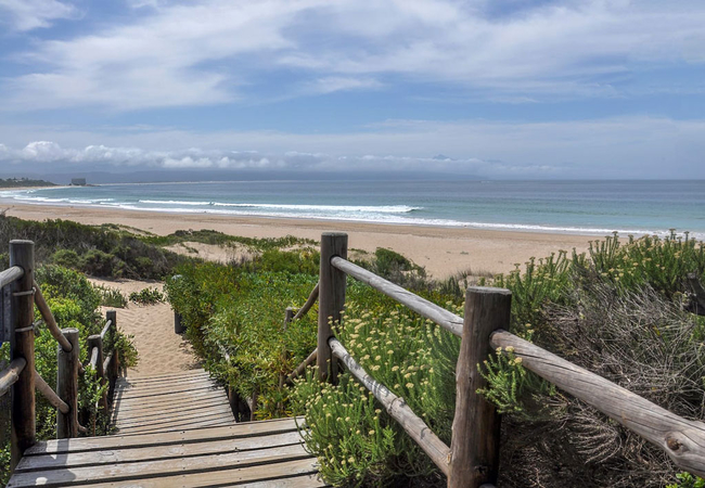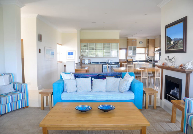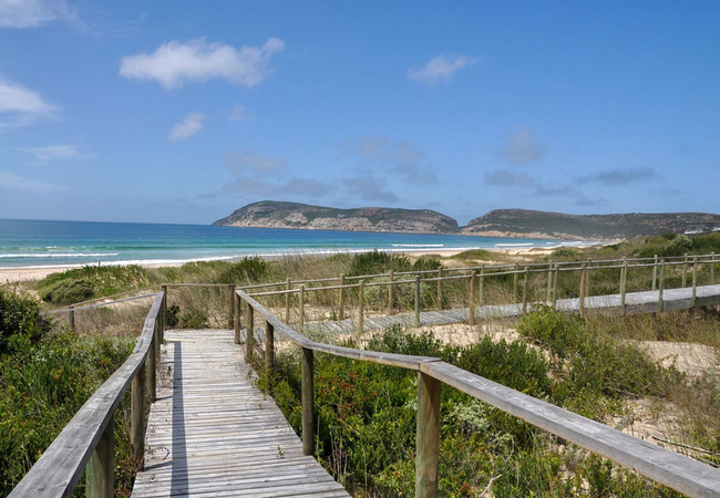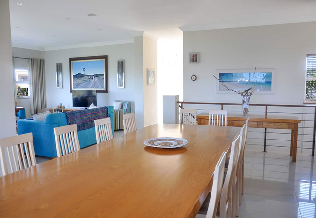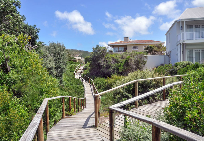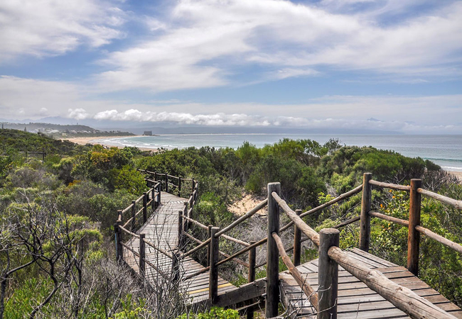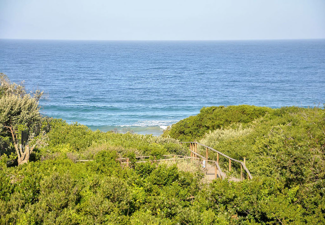 The beach can be reached directly from the house along a wooden boardwalk which opens up to a breath taking 5km stretch of fine golden sand and adjacent safe swimming beaches. Views run across the bay with the historically rich Robberg Peninsula to the right and to the left the Tstitsikama Mountain vista.