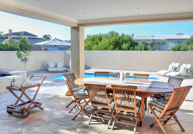The accommodation consists of five en-suite double bedrooms, fine finishes, large open-plan entertainment areas, barbeques and a solar heated private outdoor swimming pool.