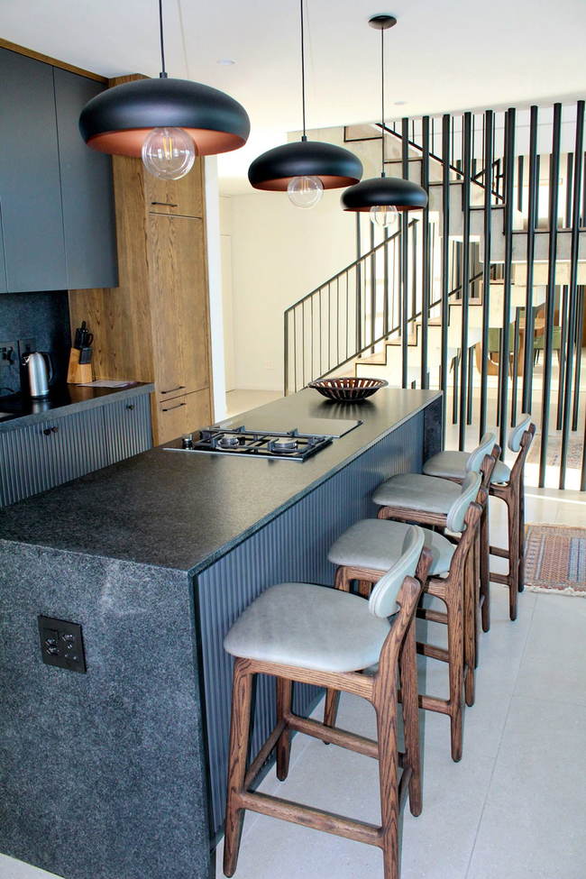 The villa is equipped with two fully fitted kitchens, one of which includes a breakfast nook, allowing for flexible and convenient meal preparation. A covered patio with a dining table and built-in braai creates an ideal space for outdoor dining, while two stylish lounge areas and two dining areas provide ample room for relaxation and socialising.