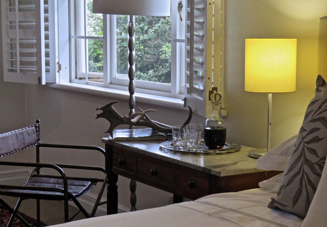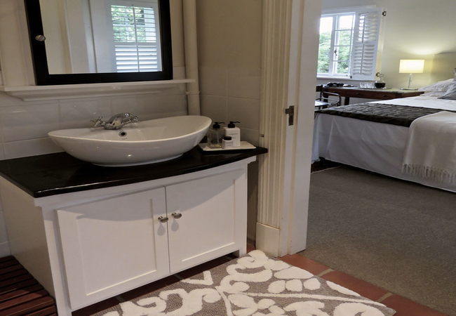 The spacious Karoo Room combines delicate linens and Colonial-style cane furnishings to create a fresh, relaxed feel. The room contains a king-size bed or 2 single beds if required. The bathroom contains double basins, a bath, and a shower. Each room has luxury linen, tea and coffee making facilities and TV's.