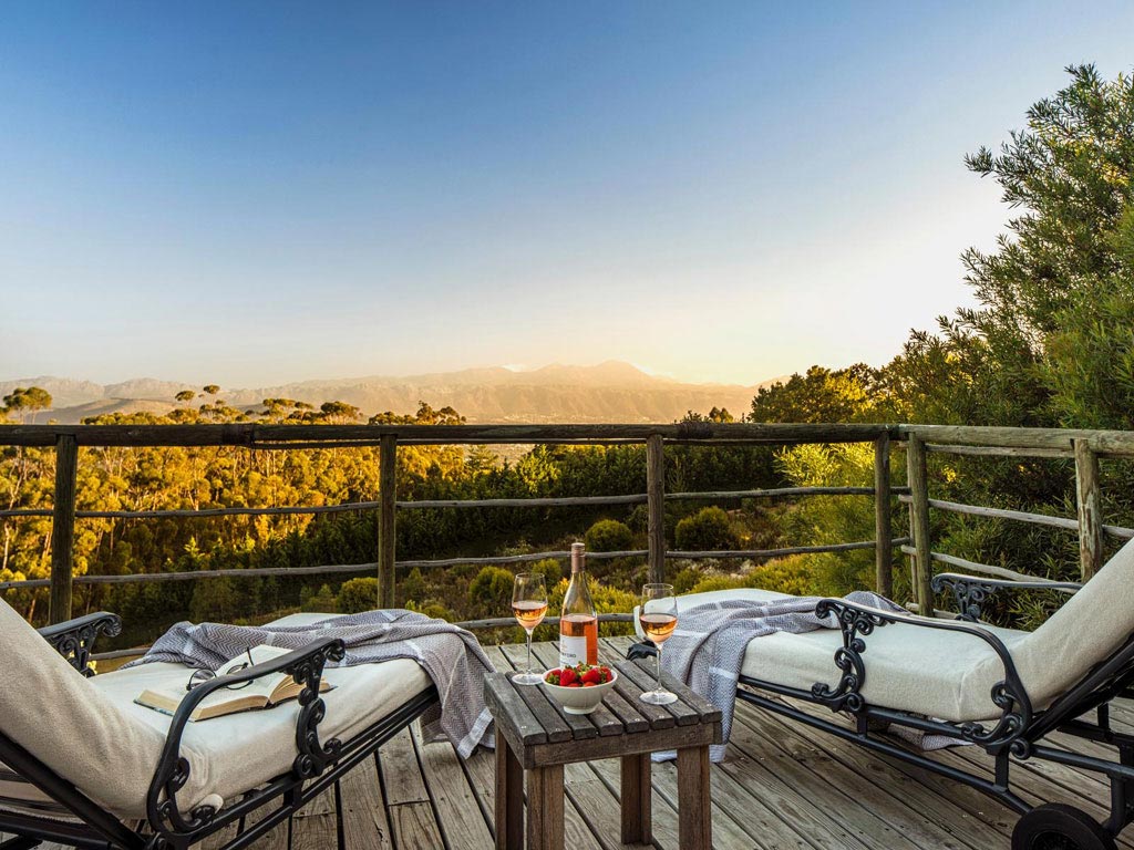 The dining room and lounge area opens onto a wooden deck which overlooks an indigenous fynbos garden abundant in bird life.