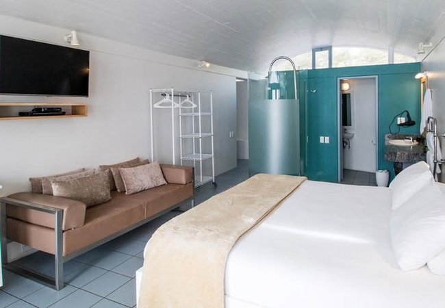 Each apartment features specially designed extra-length beds that can either be setup as two extra length single beds or a King-size bed. The en-suite bathroom consists of an open spiral glass shower, heated towel rails, a toilet and a basin. Bed linen and bathroom towels are provided.