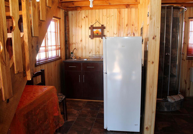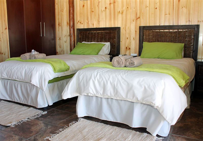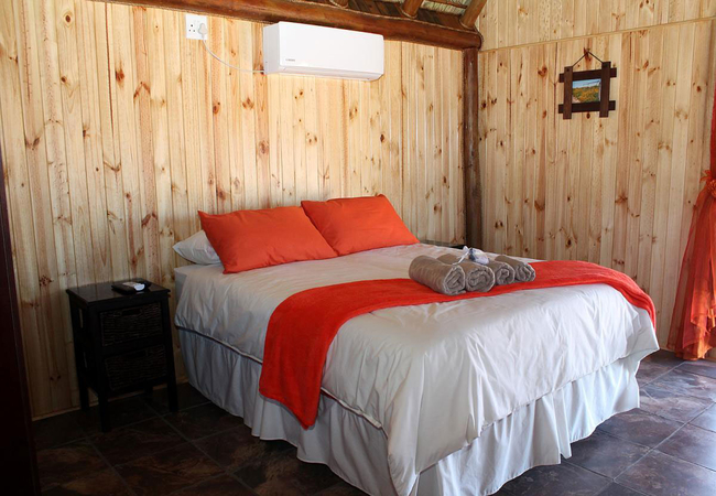 Accommodation is offered in free standing self-catering log units. These self-catering units have en-suite bathrooms and are equipped with DSTV, free Wi-Fi, air-conditioning, equipped kitchenette, a swimming pool and own braai facilities.