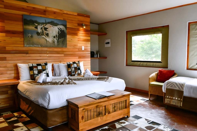 The 21 elevated Luxury Tents sleep a maximum of 58 guests, offering 5-star opulence in the African bush. The tents are air conditioned in the warm summer months and heated in the chilly winter ones, with electric blankets keeping guests extra snug.