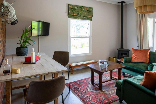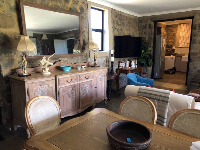 Our beautifully restored Stone Cottage offers the ideal escape for families or friends seeking a blend of heritage charm and contemporary comfort. Accommodating up to six guests, this historical gem combines old-world character with all the modern amenities you'd expect for a relaxing and memorable stay. It’s your home away from home, inviting, tranquil, and thoughtfully equipped for any season. The cottage features a spacious living area with a fireplace, a full kitchen complete with an oven, dishwasher, and microwave, and a dedicated dining area for shared meals. Guests can unwind with DSTV, Netflix, or simply take in the garden views from the private patio furnished for outdoor lounging and dining. A hot tub, braai area, and beautifully maintained garden make outdoor living just as enjoyable. Inside, comfort is paramount: electric blankets, a fan, a heater, and non-feather pillows ensure a restful night’s sleep in any weather. The bathroom includes both a separate tub and shower, plus thoughtful touches like bathroom amenities, a hairdryer, and ironing facilities. Additional conveniences include Wi-Fi, a cleaning service, and coffee/tea-making facilities, so all you need to do is arrive and enjoy.