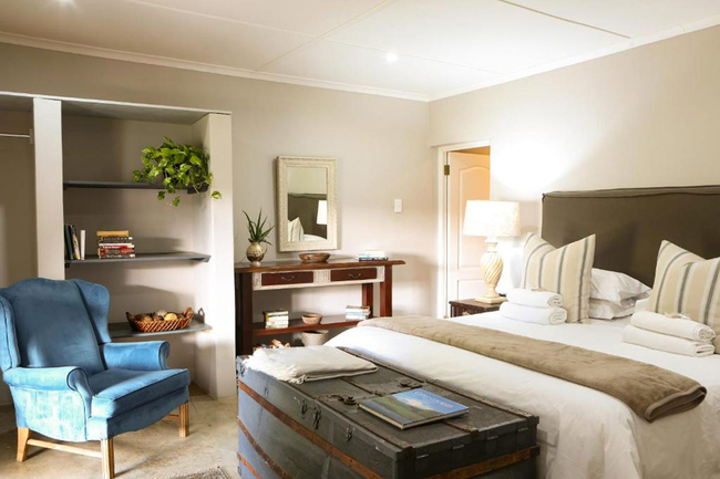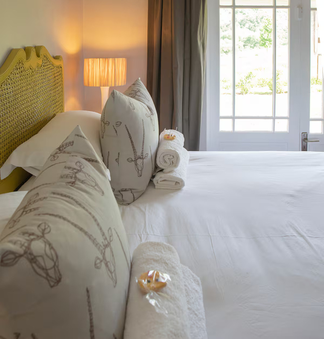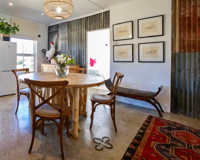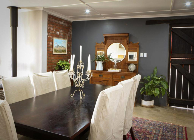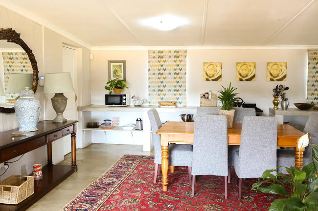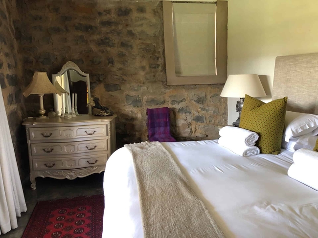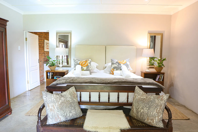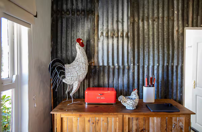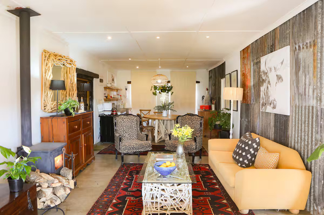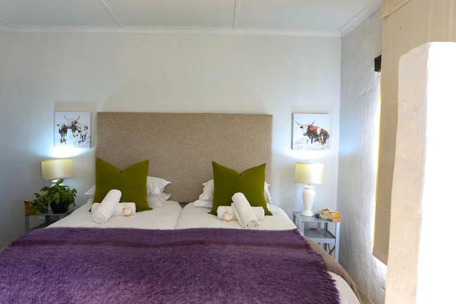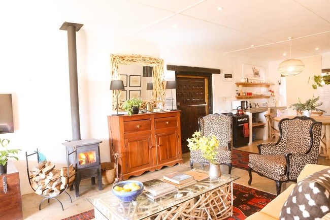 Designed to accommodate up to four guests, this charming cottage offers a front-row view of the pastoral day-to-day, where mornings begin with the soft hum of the dairy in motion and the fresh scent of open fields. Ideal for families or friends in search of a countryside escape, the cottage combines old-world character with considered comforts, allowing guests to slow down and savour the moment. The two tastefully furnished bedrooms provide a restful haven, each offering the flexibility of a king-size bed or twin arrangement to suit your needs. Both rooms include their own private en-suite bathroom—one fitted with a deep, inviting bath, the other with a sleek, modern shower. Fine linens, electric blankets, and wall heaters ensure warmth and comfort throughout the seasons, creating an atmosphere of quiet ease after a day of exploration. Thoughtfully equipped, the kitchen includes everything required to prepare hearty farm-style meals or simple snacks with ease, from a gas hob and electric oven to a fridge, microwave, and dishwasher. The open-plan living area is both cosy and inviting, centred around a wood-burning stove that brings warmth and atmosphere to chilly evenings. Whether you're curling up with a book, catching up on your favourite shows with the full DSTV bouquet, or simply enjoying conversation, this space offers the perfect backdrop. Modern conveniences have not been overlooked. Guests enjoy complimentary Wi-Fi, an inverter to maintain power during load shedding, and daily housekeeping to keep the space fresh and orderly throughout their stay. At Sunflower Cottage, you're not merely accommodated, you’re welcomed into the heart of farm living, with all its authenticity and charm.