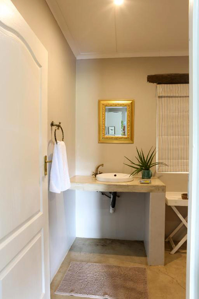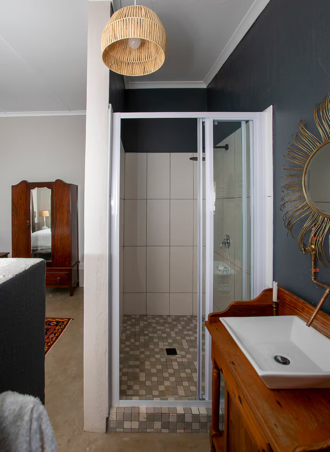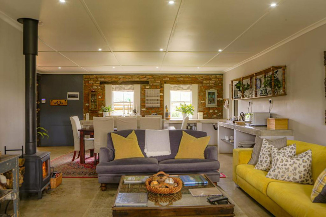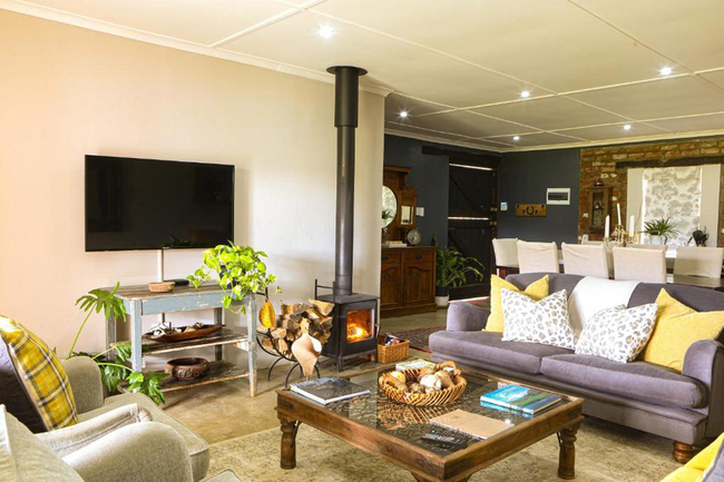 Ouhout Cottage holds the distinction of being the original dwelling on Springvale Farm and continues to offer a generous and inviting escape for up to six guests. Featuring three well-appointed bedrooms, each with its own private en-suite bathroom, the cottage is ideally suited for families or small groups seeking both comfort and privacy. Thoughtfully arranged sleeping options, along with the warmth of electric blankets and heaters, ensure restful evenings, regardless of the season. After a day spent exploring the farm, the calm and comfort of these interiors provide the ideal setting to unwind and prepare for tomorrow’s adventures. At the heart of the cottage lies a spacious open-plan living area that brings the rhythm of rural life indoors. A fully equipped kitchen stands ready for everything from home-cooked meals to leisurely feasts with friends. The adjoining lounge, centred around a wood-burning stove, offers a warm and welcoming space to relax, read, or simply enjoy the quiet charm of country living. Modern conveniences are also in place: complimentary Wi-Fi keeps you connected, while a full DSTV bouquet caters to varied entertainment tastes. Daily housekeeping maintains a sense of order and ease, and an inverter system ensures that essential comforts remain uninterrupted during periods of load shedding.