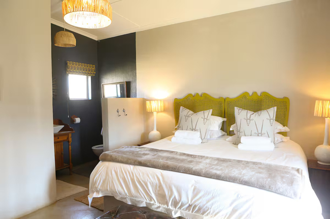 Wilde Als Cottage stands apart as a spacious and refined countryside retreat, offering an exceptional farm stay experience for up to four guests. Positioned in its own quiet corner of the property, this cottage commands far-reaching views of the surrounding bushveld, best enjoyed from the generous stoep that wraps along its façade. Designed for those who value both comfort and character, the cottage combines rural charm with understated luxury. Inside, guests are welcomed by two elegantly furnished bedrooms, each offering the flexibility of either king-size or twin bed configurations. Both rooms feature private en-suite bathrooms, one appointed with a deep bathtub for leisurely soaks, and the other with a sleek, invigorating shower. Cosy electric blankets and heaters provide warmth during the cooler months, while fine linens and plush towels ensure every night's rest is restorative. The outdoor experience is every bit as inviting. Whether soaking in the farm-style hot tub beneath an open sky or rinsing off the day's adventures in the open-air shower, guests are encouraged to unwind and reconnect with nature. The private fire pit invites storytelling under the stars, and the built-in braai promises long, laughter-filled evenings over flame-grilled meals. For those keen to explore, the farm offers bass fishing in tranquil dams and an array of scenic trails ideal for walking, running, or cycling.