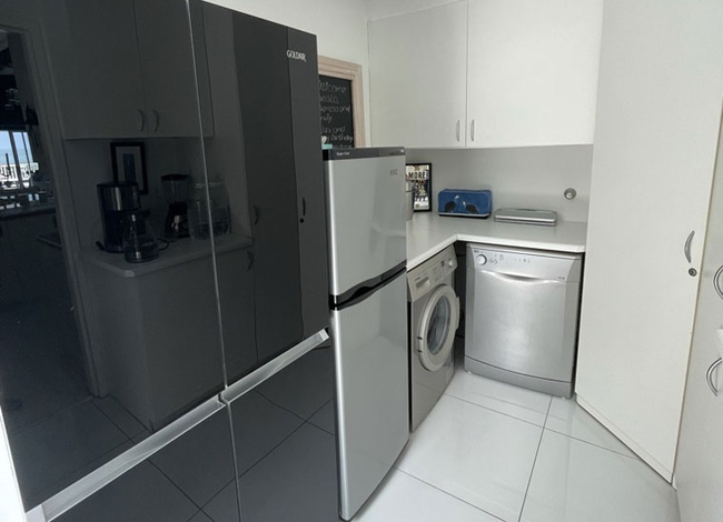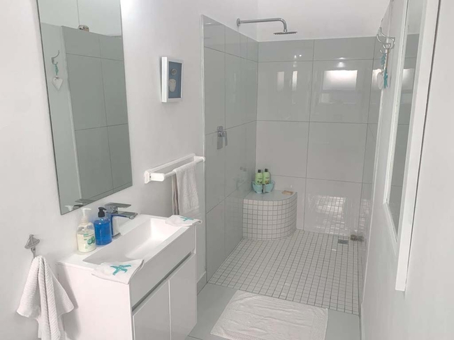 The first and second bedrooms each feature a queen-size bed and en-suite bathroom with a shower, while the third bedroom is furnished with a double bed and has access to a separate bathroom, complete with both a shower and bathtub. Every room is tastefully decorated in soft, soothing tones, with high-quality linens and generous cupboard space to ensure a comfortable and welcoming stay.