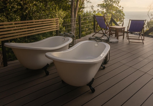 Laze on the chill net whilst reading a book, listening to the sounds of the forest. Relax in the eco friendly wood fired hot tub while watching the spectacular sunset. Recap on the day while enjoying a braai on the deck using the gas braai and chilling at the cocktail bar.