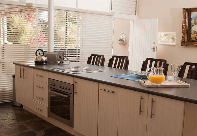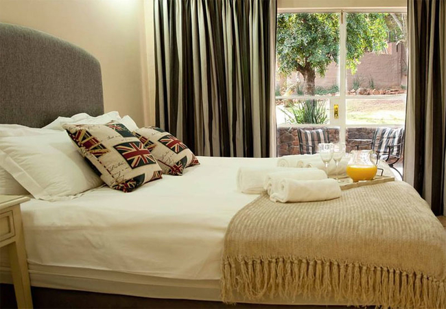 This comfortable loft apartment has a large bedroom with a day bed and two single beds that can be converted to a king bed. The en-suite bathroom has both a bath and a shower. The lounge has a TV with DStv and the kitchen is fully equipped with everything required for your stay. Outside you can make use of the private garden and braai / barbeque facilities. The four lovely apartments all boast DStv, uncapped internet access, electric fencing, 24 hour armed response and undercover parking bays.