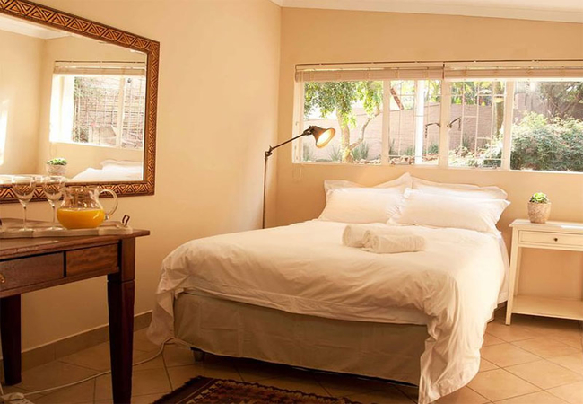 This comfortable loft apartment has a large bedroom with a day bed and two single beds that can be converted to a king bed. The en-suite bathroom has both a bath and a shower. The lounge has a TV with DStv and the kitchen is fully equipped with everything required for your stay. Outside you can make use of the private garden and braai / barbeque facilities.