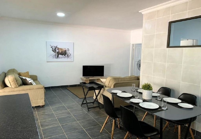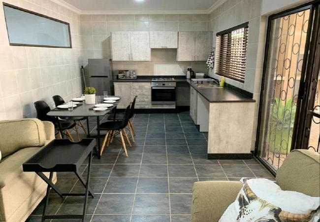 The lounge is fitted with a Smart TV, as well as Wi-Fi access. The unit does not have access to any open channels or DStv, and guests will need to use their own login details for streaming services such as Netflix, Showmax, and more.