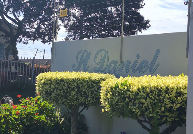 St Daniel 1 has three bedrooms. The first bedroom is furnished with a Queen-size bed and has an en-suite bathroom fitted with a shower, toilet and basin. The second bedroom has a double bed and the third a single bed. These two rooms share a bathroom fitted with a bath, shower, toilet and basin. The kitchen is well-equipped for self-catering including a washing machine and ironing facilities. The lounge has a ceiling fan, ample seating and a flat-screen Smart TV with Netflix. Wi-Fi access is provided. The lounge opens to an enclosed balcony with a dining table and chairs and full sea views. All rooms have rechargeable lamps for loadshedding. The complex features a communal swimming pool and braai facilities, secure parking, and access to a walkway that leads to the beach.