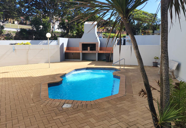 The complex features a communal swimming pool and braai facilities, secure parking, and access to a walkway that leads to the beach.