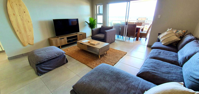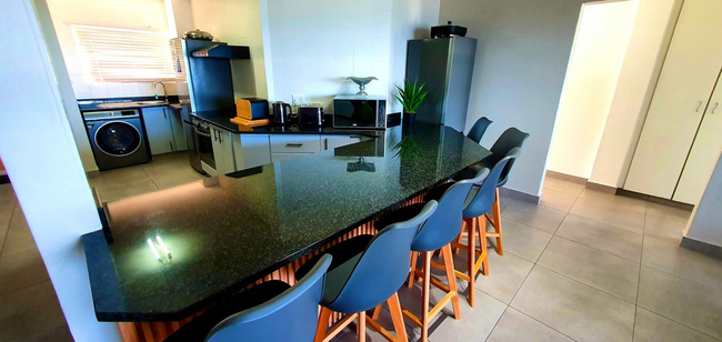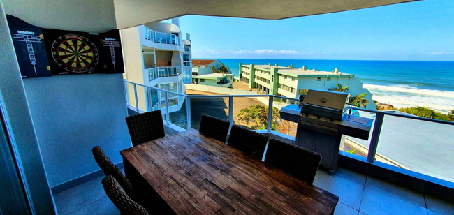 St Daniels 8 is a stylish and well appointed three bedroom, two bathroom first floor apartment situated in a secure complex in Ramsgate, offering impressive sea views. The unit comfortably accommodates six guests, with the main and second bedrooms each featuring a queen sized bed, while the third bedroom is furnished with two single beds. All bedrooms are fitted with ceiling fans, and the main bedroom opens onto a generous balcony with beautiful ocean views. There are two bathrooms, including an en-suite with a shower, toilet and basin, as well as a second bathroom equipped with a bath, shower, basin and toilet. The apartment features a modern, fully equipped kitchen that includes two fridge freezers, a stove and oven, a microwave, and a washer and dryer combo. A breakfast nook provides comfortable seating for six guests. The spacious lounge is furnished with a contemporary lounge suite that seats six, along with a flat screen smart TV, unlimited Wi Fi, and full bouquet DStv. A built in braai and a gas braai are located on the large verandah, which is furnished with an eight seater patio set and overlooks breathtaking sea views. Secure underground lock up parking is available for two vehicles, with additional visitor parking within the complex. Guests can enjoy access to the communal swimming pool and direct beach access, with the main swimming beach situated approximately 150 metres away. All linen and bath towels are provided, guests are kindly requested to bring their own beach towels.