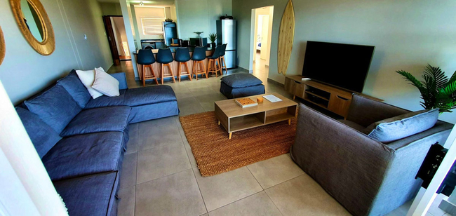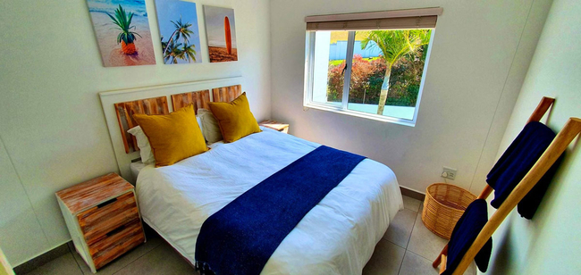 St Daniels 8 is a stylish and well appointed three bedroom, two bathroom first floor apartment situated in a secure complex in Ramsgate, offering impressive sea views. The unit comfortably accommodates six guests, with the main and second bedrooms each featuring a queen sized bed, while the third bedroom is furnished with two single beds. All bedrooms are fitted with ceiling fans, and the main bedroom opens onto a generous balcony with beautiful ocean views.