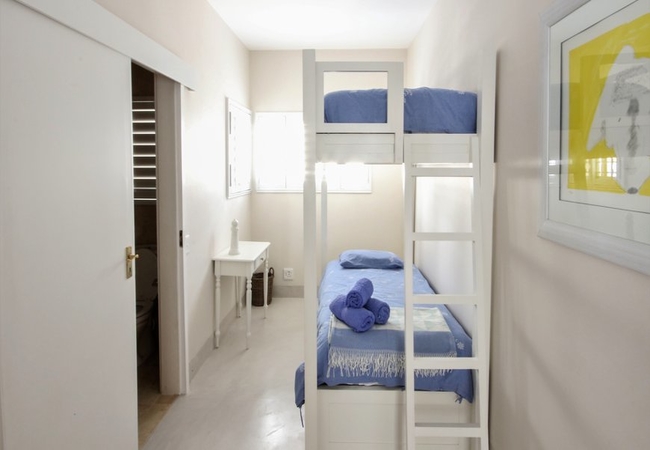 The self catering holiday apartment in Plettenberg Bay has three en-suite bedrooms. Two of the rooms are furnished with King-size beds (can be separated into single beds) and one has bunk beds.