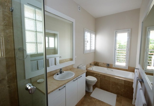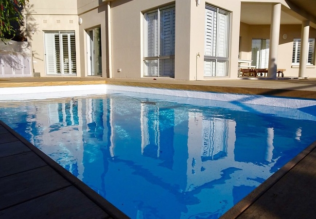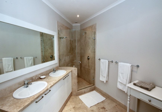 This 3 bedroom/3 bathroom (all en-suite) apartment is brand new and nestles on the ground floor of a luxury multi-story home with its own entrance and is fully self-contained. Equipped with flat-screen TVs, DSTV, Wi-Fi and a sparkling pool.
