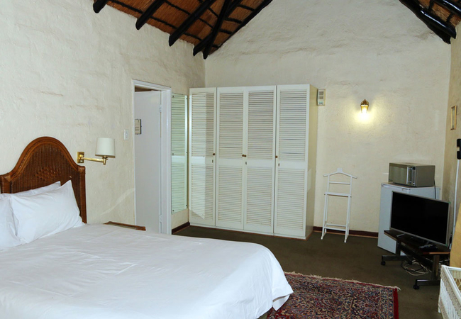 This spacious, bright and outward facing room is tastefully decorated. It has DStv, a fridge, microwave, bathroom amenities and a tea / coffee station. It is situated close to the swimming pool.
