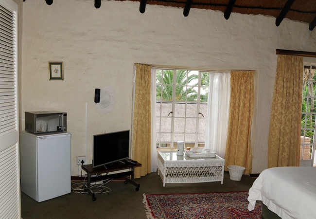 Deluxe Garden Cottage number 9 is spacious, bright and outward facing room is tastefully decorated and has a flat screen TV, DStv, Fridge, Microwave, bathroom amenities and tea and coffee making facilities. Located close to the swimming pool in our plush gardens.