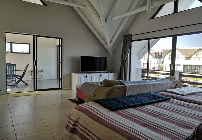 You will find yourself right on the water with your own private jetty and a small beach. Folding, stacking glass doors open up to the canals. Across the road, a few seconds walk, down a quaint footpath, is the beautiful Kromm River - white sand and calm water. Here you will frequently see and hear the many fish eagles residing in the tall trees on the banks across the river.