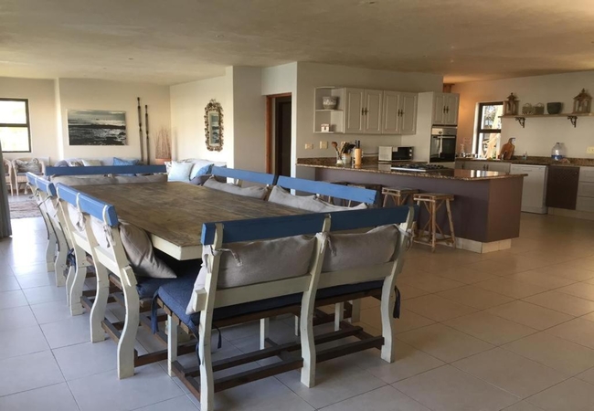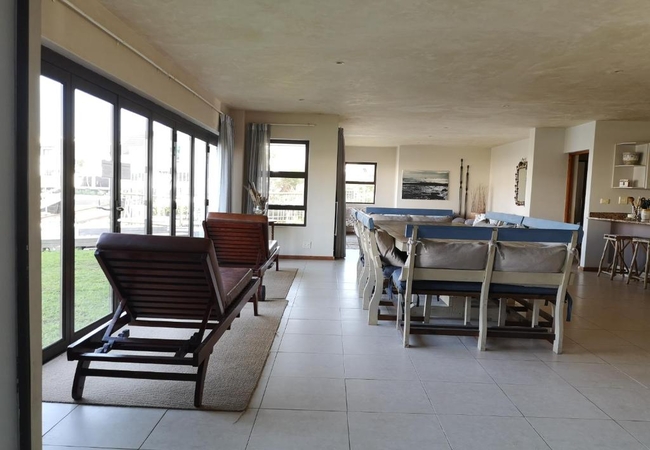 St Francis Bay House On The Canal is an entertainers dream and consists of two lounges and a fantastic large open plan kitchen and dining room area - the dining room has a magnificent, thick set, dark wooden dining room table.