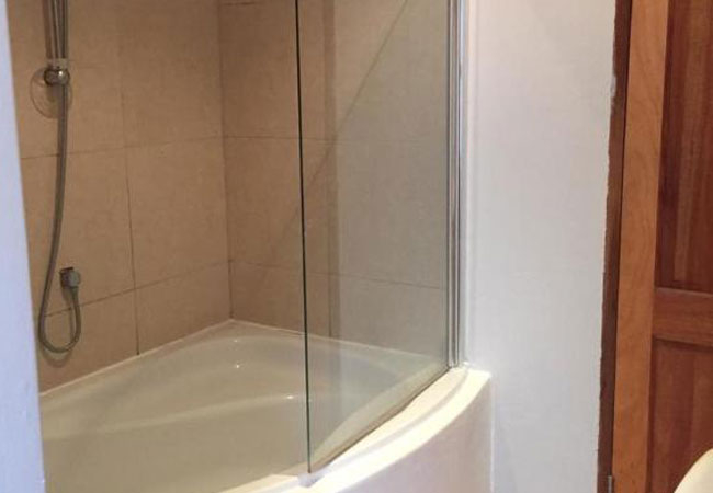 The first bedroom has a queen bed, and a balcony overlooking the canals. This en suite bathroom has a shower and big bath. The next en suite bedroom has a queen bed and this light and sunny bathroom has a modern, spacious shower.
