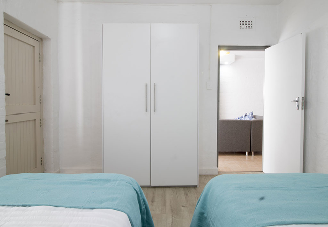 16 St Johns Apartment is a self catering holiday apartment with two bedrooms and a bathroom. The main bedroom is furnished with a Queen-size bed and the second bedroom has two single beds. Both bedrooms have built-in cupboards and bedside tables. The bathroom is fitted with a walk-in shower, bath, toilet and a basin. Bed linen and bathroom towels are provided. The living area has a comfortable L-shaped couch and a wall-mounted, flat-screen TV with DStv for guests to relax and watch. There is a four seater dining table for guests to enjoy their meals. The fully equipped kitchen includes a fridge / freezer, microwave, tea / coffee making facilities, stove and an oven. Outside there is a swimming pool, BBQ / braai facilities and a garden for children to run around.