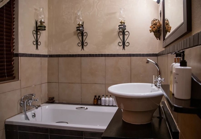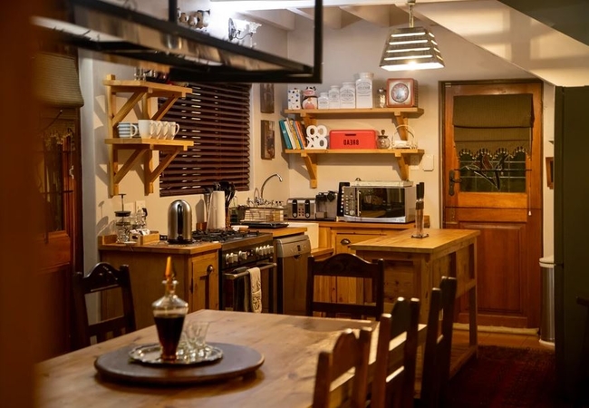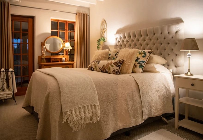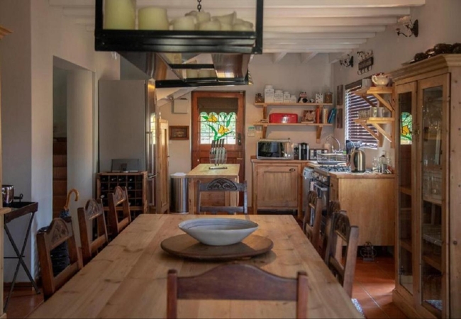 The Cottage is the epitome of luxury, with wood burning fireplaces, underfloor heating, a fully equipped country kitchen with dining area and fireplace and two patios (downstairs and upstairs) overlooking a lake and the Dullstroom mountains.