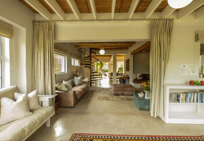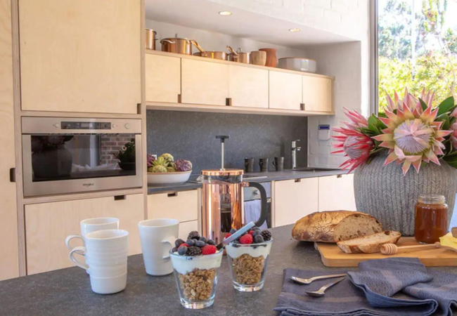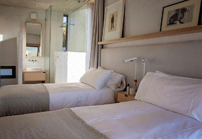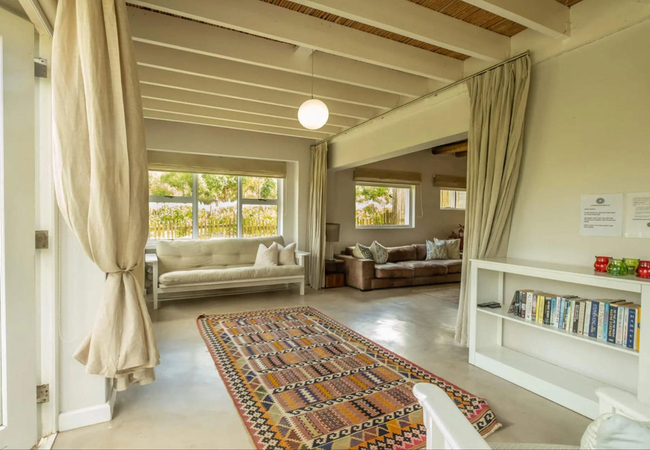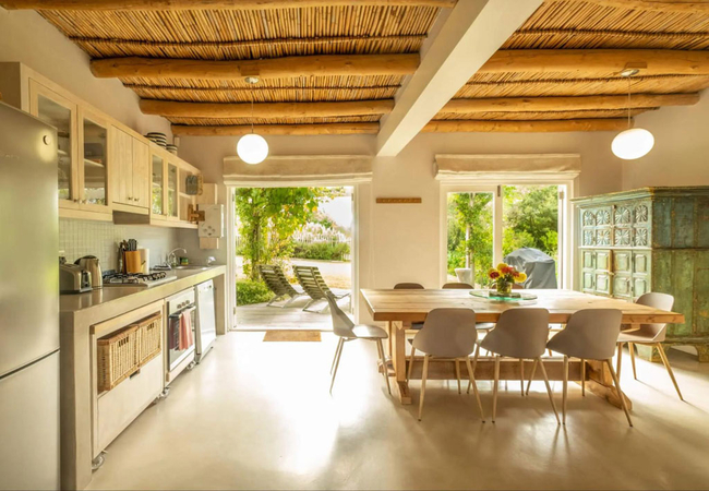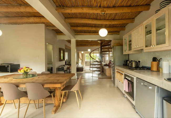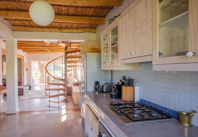Stonehaven Earth Cabin is nestled within the tall fynbos and indigenous vegetation found on the farm ensuring a sense of seclusion and privacy. The cabin has two bedrooms, one is furnished with a Queen-size bed and the other is furnished with two single beds. Each room has an en-suite bathroom fitted with a shower, toilet and basin. The open-plan kitchen is well equipped with a gas hob, microwave, and dishwasher. Guests can relax in the lounge which has a cosy fireplace. Wi-Fi is provided. Outside there is a private deck with braai facilities and a wood-fired Kol-Kol hot tub.