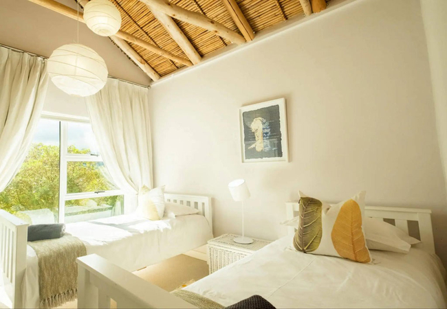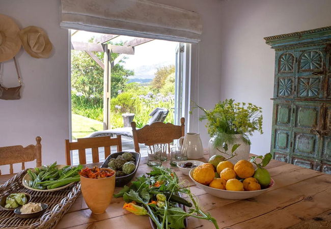 Stonehaven Heaven Cottage is a double-story holiday cottage set in the middle of Stonehaven's garden amongst the sunflowers, herbs and aromatherapy field. The main bedroom is furnished with a King-size bed and has an en-suite bathroom fitted with a shower, toilet and basin. The second bedroom is furnished with a Queen-size bed, while the third bedroom is furnished with twin beds, and these rooms share the use of a bathroom fitted with a shower, toilet and basin. The ground-floor kitchen is fully equipped with a stove, gas hob, microwave, and dishwasher. Guests can relax in the lounge which has a cosy fireplace. Wi-Fi is available. Outside there is a private deck with lovely views, braai facilities and a wood-fired Kol-Kol hot tub add to the tranquil breakaway.