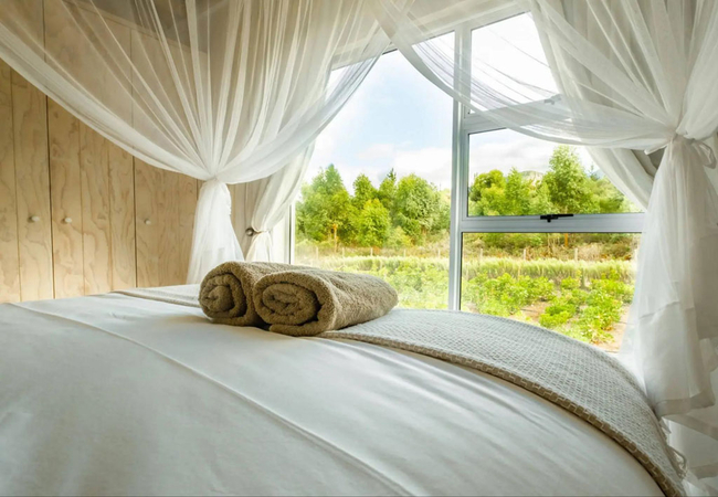 For convenience, a filled water bottle, filter coffee, sugar, small milk, tea, toilet paper, lighter and Eco-friendly firelighters as well as firewood is supplied. Guests can also request a cottage pre-stocking, maid service, massage treatment or yoga instructor at an additional cost.