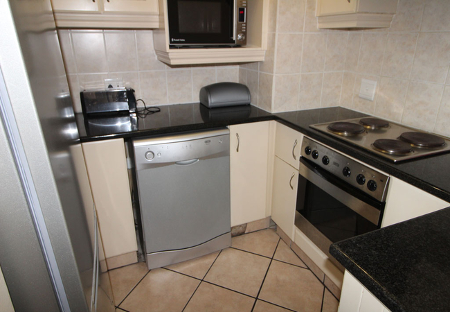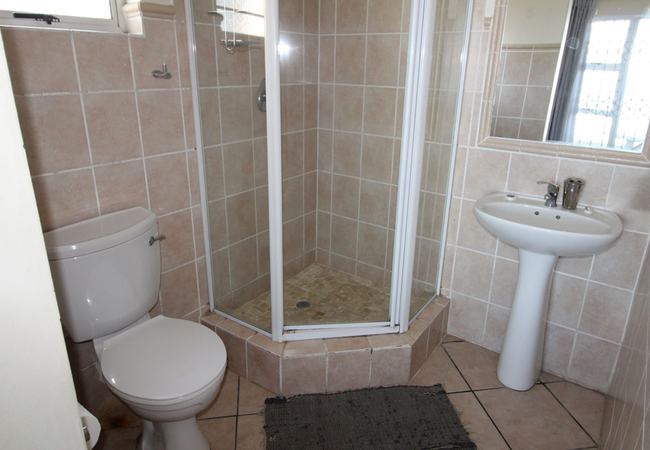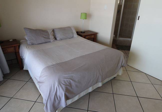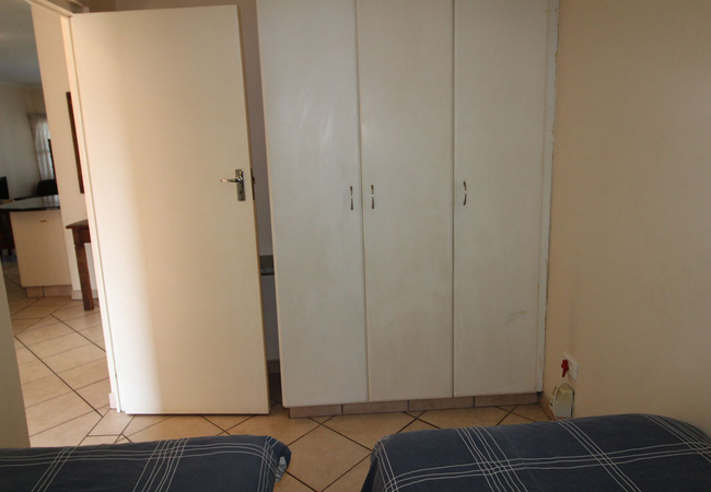 Strandloper 3 has three bedrooms, two bathrooms, and an open-plan living, dining and kitchen area. The first bedroom is furnished with a double bed and has an en-suite bathroom fitted with a shower, toilet and basin. The second and third bedrooms contain twin beds and have access to the separate bathroom fitted with a bath, shower, toilet and basin. The kitchen is equipped with a fridge, an oven and stove, a microwave, a dishwasher, and a kettle, and the living area contains a dining room table and chairs, seating, and a TV. The unit is also equipped with portable air-conditioning. The living area leads out onto a large patio with a lovely sea view. There is also a built-in gas braai on the patio. Guests can access Uvongo's main swimming beach and the Pavilion restaurant through the complex garden.