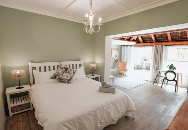 Classic Queen Studio is furnished with a Queen-size bed and has an en-suite bathroom fitted with a shower, toilet and basin. There is a kitchenette fitted with two plate stove, fridge, microwave and tea / coffee making facilities. Wi-Fi and a smart TV with Netflix are available. A cleaning service can be arranged on request at an additional cost. The cottage opens onto a terrace.