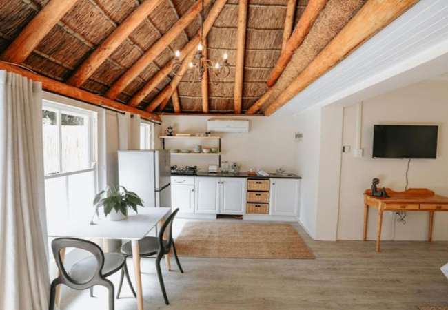 Comfort Family Cottage has two rooms furnished with a Queen-size bed in one and a single bed in the other. The bathroom is fitted with a bath / shower combo, toilet and basin. There is a kitchenette fitted with two plate stove, fridge, microwave and tea / coffee making facilities. Wi-Fi and a smart TV with Netflix are available. A cleaning service can be arranged on request at an additional cost. The cottage opens onto a terrace.