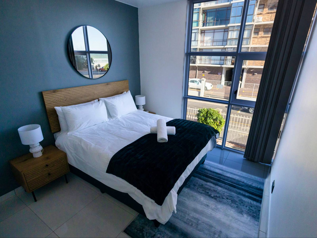 This apartment can comfortably 6 guests at a time and comprises 3 bedrooms and 2 bathrooms. The main bedroom is furnished with a queen-size bed and features an en-suite bathroom fitted with a shower. The second bedroom also has a queen-size bed, while the third bedroom contains a tri-bunk bed. These 2 rooms share the second bathroom fitted with a shower-over-bath. Quality linen and bath towels are provided; however, guests are required to bring their own beach towels. The stylish open-plan living area features a kitchen equipped with a stove, oven, microwave, fridge-freezer, cutlery and crockery as well as tea- and coffee-making facilities. For guests' convenience, a dishwasher is available. Leading from the kitchen is a dining table with ample seating for everyone to enjoy their meals together. The lounge has comfortable seating and a flat-screen TV with Netflix. Access to free Wi-Fi is available. This living area has large windows with beautiful ocean views. The complex offers a communal coin-operated laundry facility on the ground floor, as well as communal braai facilities. Secure on-site parking is provided.