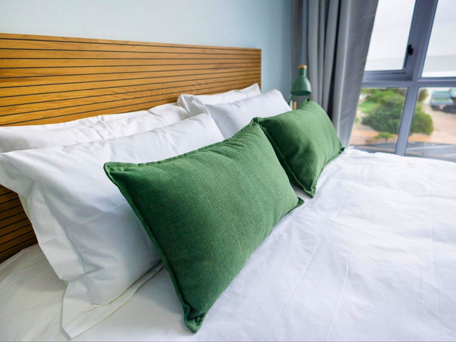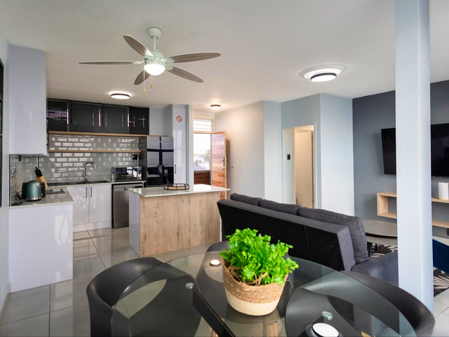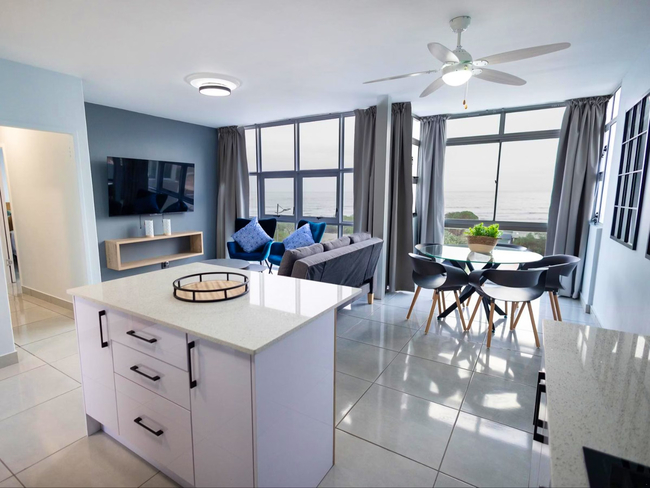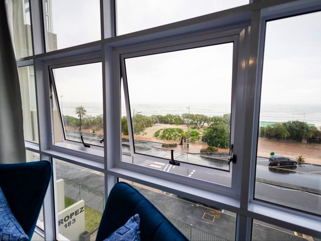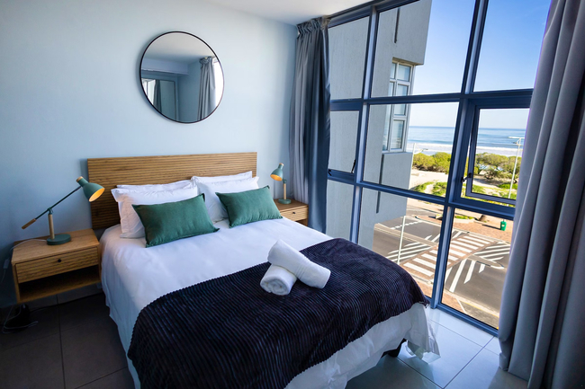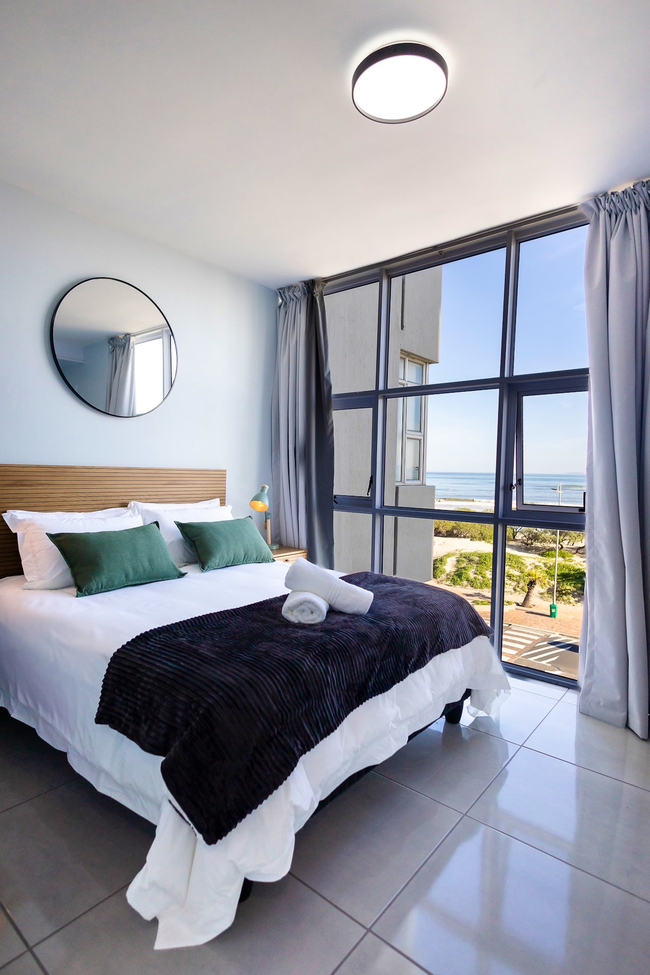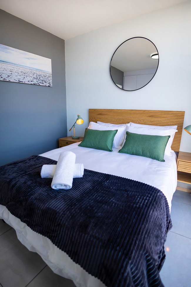 Perched on the third floor, this apartment comfortably accommodates up to 4 guests across two well-appointed bedrooms and a bathroom. The main bedroom features a queen-size bed, while the second bedroom is equipped with a bunk bed. The bathroom is fitted with a shower-over-bath, washbasin, and toilet. Crisp white linen and bath towels are provided for your convenience, though guests are kindly requested to bring their own beach towels. The bright, open-plan living area includes a fully equipped kitchen equipped with a stove, oven, microwave, fridge-freezer, cutlery, crockery, and a dishwasher. A dining table adjacent to the kitchen invites guests to enjoy meals together. The cosy lounge area is furnished with comfortable seating and a flat-screen TV, and complimentary Wi-Fi is available for added convenience. This apartment boasts stunning ocean views, making it a perfect spot to unwind with a sundowner in the evenings. Additional amenities include access to a laundromat within the building and a communal braai area. Secure parking is provided behind a remote-controlled gate.