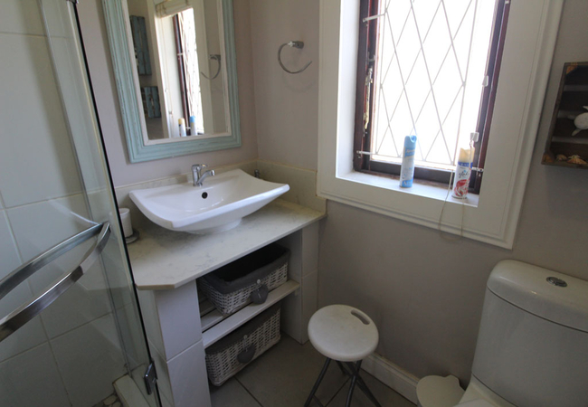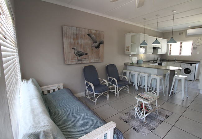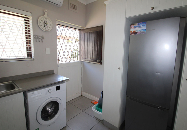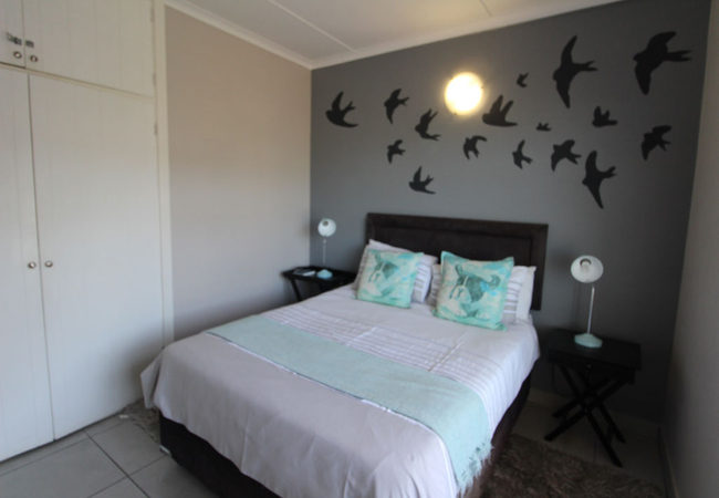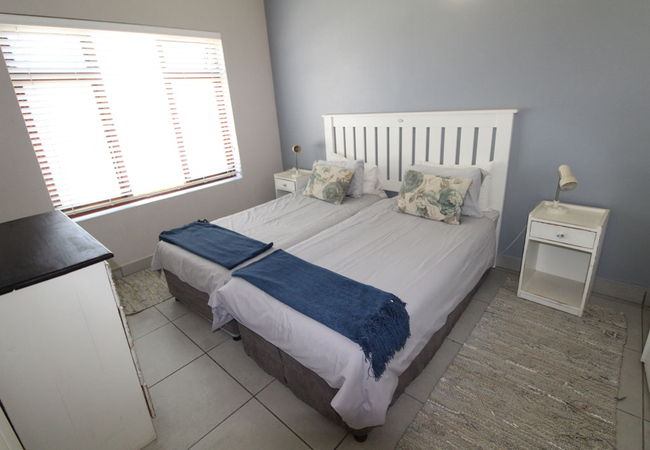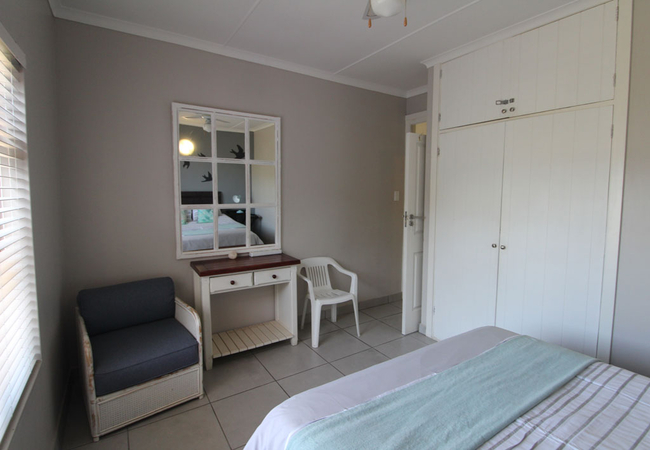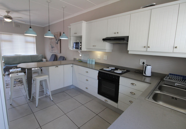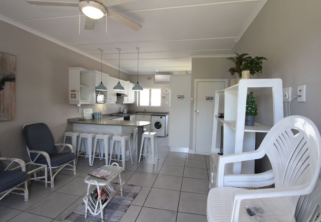 Sue Casa 3 is a ground-floor apartment that has two bedrooms, one bathroom and is able to accommodate four guests. The main bedroom is furnished with a double bed, while the second bedroom is furnished with two single beds. The bathroom is fitted with a shower, toilet and basin. Guests need to bring their own towels. Bed linen is provided. The apartment also comprises an open-plan kitchen and lounge area. The kitchen is well-equipped and features a stove, oven, fridge-freezer, kettle, toaster, microwave and washing machine. There is also a breakfast bar with 4 stools. The lounge area has an L-shaped couch and a TV with a full selection of DStv channels. Ceiling fans and air conditioning are available in both bedrooms and the lounge.