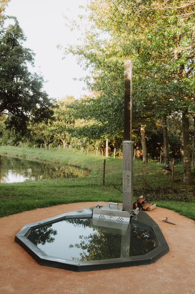 The cottage is fully equipped for self-catering, featuring a well-appointed kitchen and a KolKol wood-fired hot tub for relaxing under the stars. A generous supply of wood is provided for fireplaces, braais, and the hot tub, with additional wood available for purchase. A dedicated housekeeper is on hand to assist with daily tasks such as dishwashing, bed-making, and fire preparation, ensuring a comfortable stay.