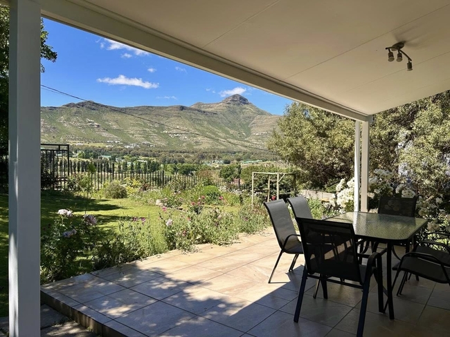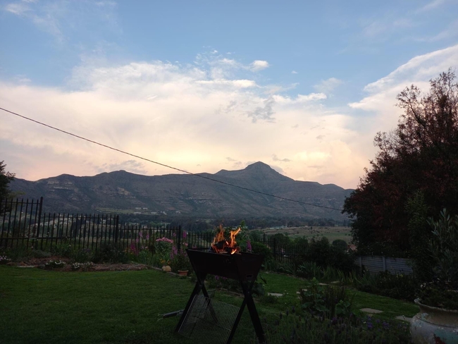 Sugarbird is a cosy 6-sleeper house with 3 bedrooms, 2 shared bathrooms, an open-plan kitchen, dining and lounge area with a fireplace and TV. It features a patio with a dining table, braai facilities, solar power, and stunning garden and mountain views.