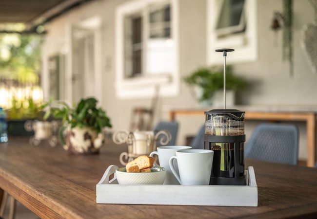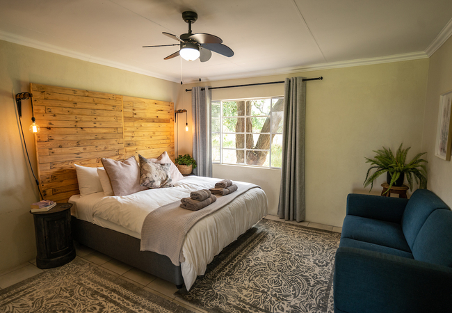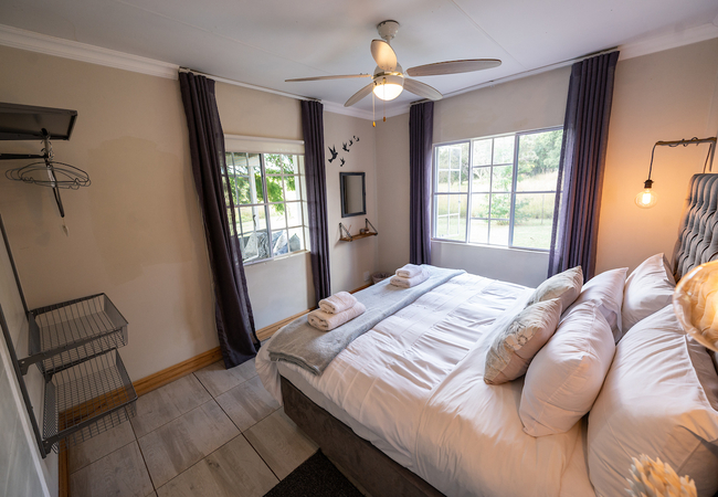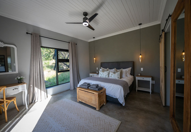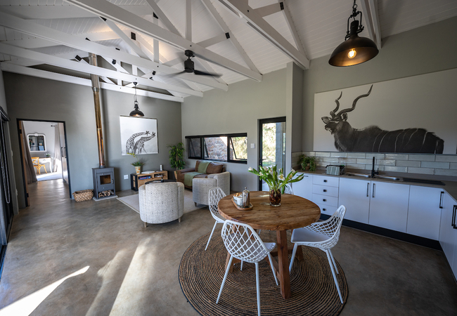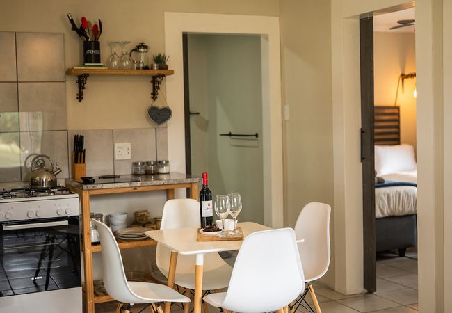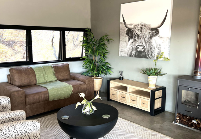 New Wine is a private, luxury, self-catering home situated near The Shed and has a gorgeous view of Marula mountain. New Wine has 1 bedroom and 1 luxury bathroom. The open plan sitting room/kitchen has everything you need as well as a private braai area.